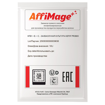 Заквасочная культура для кефира с пробиотиками ProBio AFFIMAGE содержит микс мезофильных газообразующих и термофильных штаммов, а так же дрожжей. Высокое газообразование, сливочный вкус и пикантная остринка кефира "из детства".